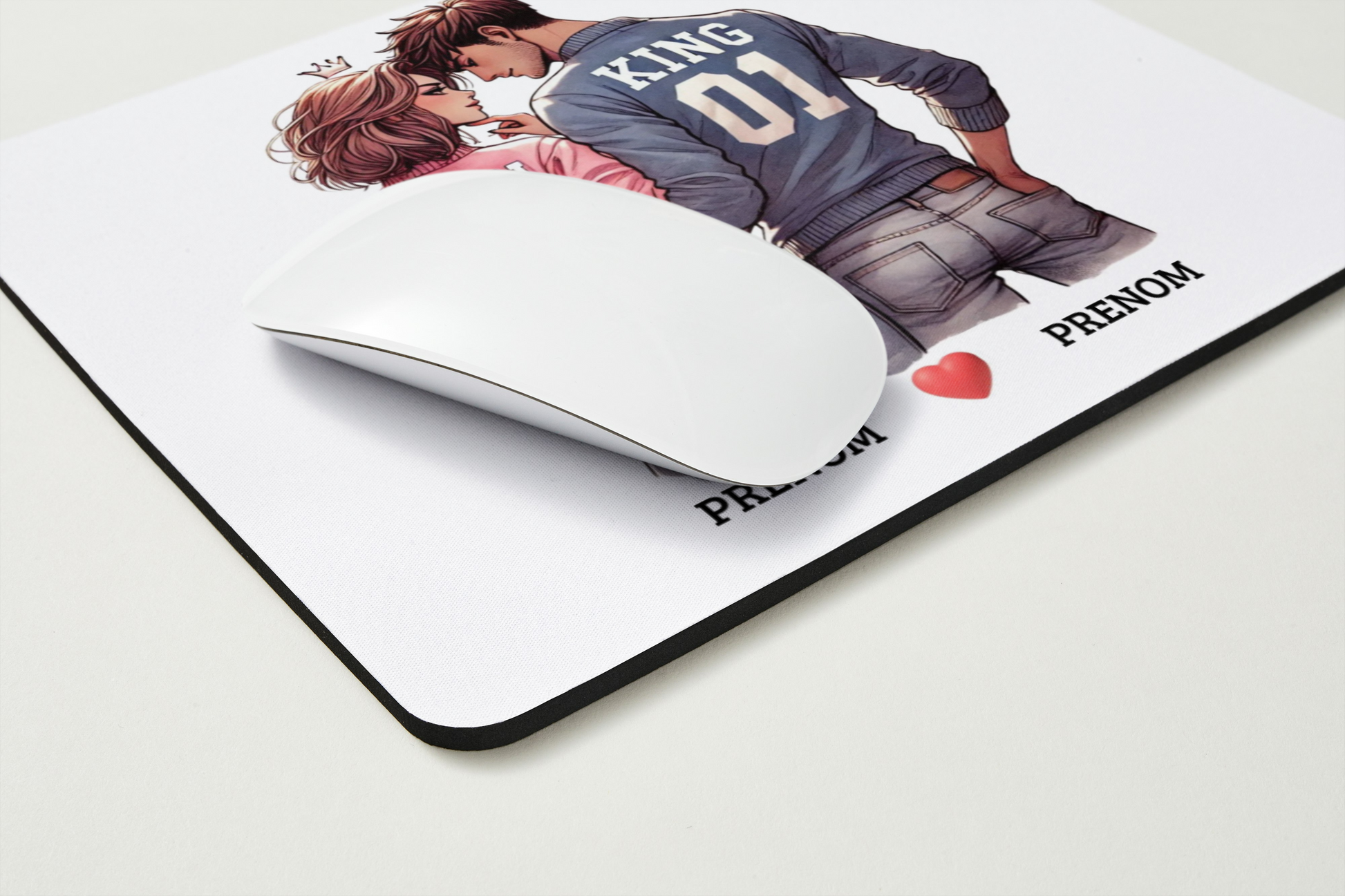 🎨 Tapis de souris – Couple « King & Queen » – Personnalisé avec vos Prénoms