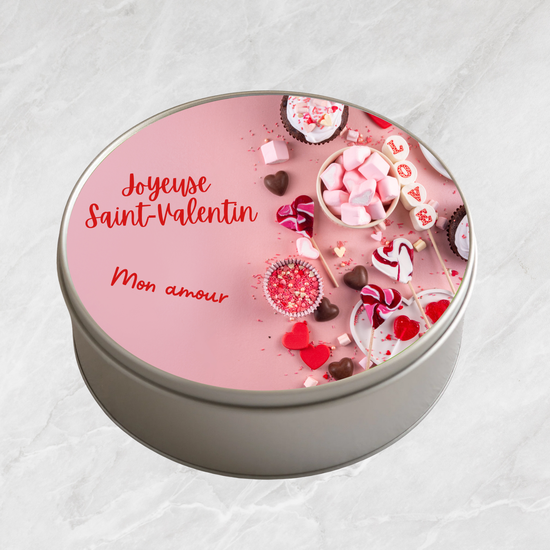 Boîte à biscuits ronde en métal - Joyeuse Saint-Valentin Mon amour avec friandises
