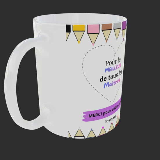 Offrez un cadeau rempli de reconnaissance avec ce mug personnalisé spécialement conçu pour remercier une maîtresse ou un maître en fin d’année scolaire.