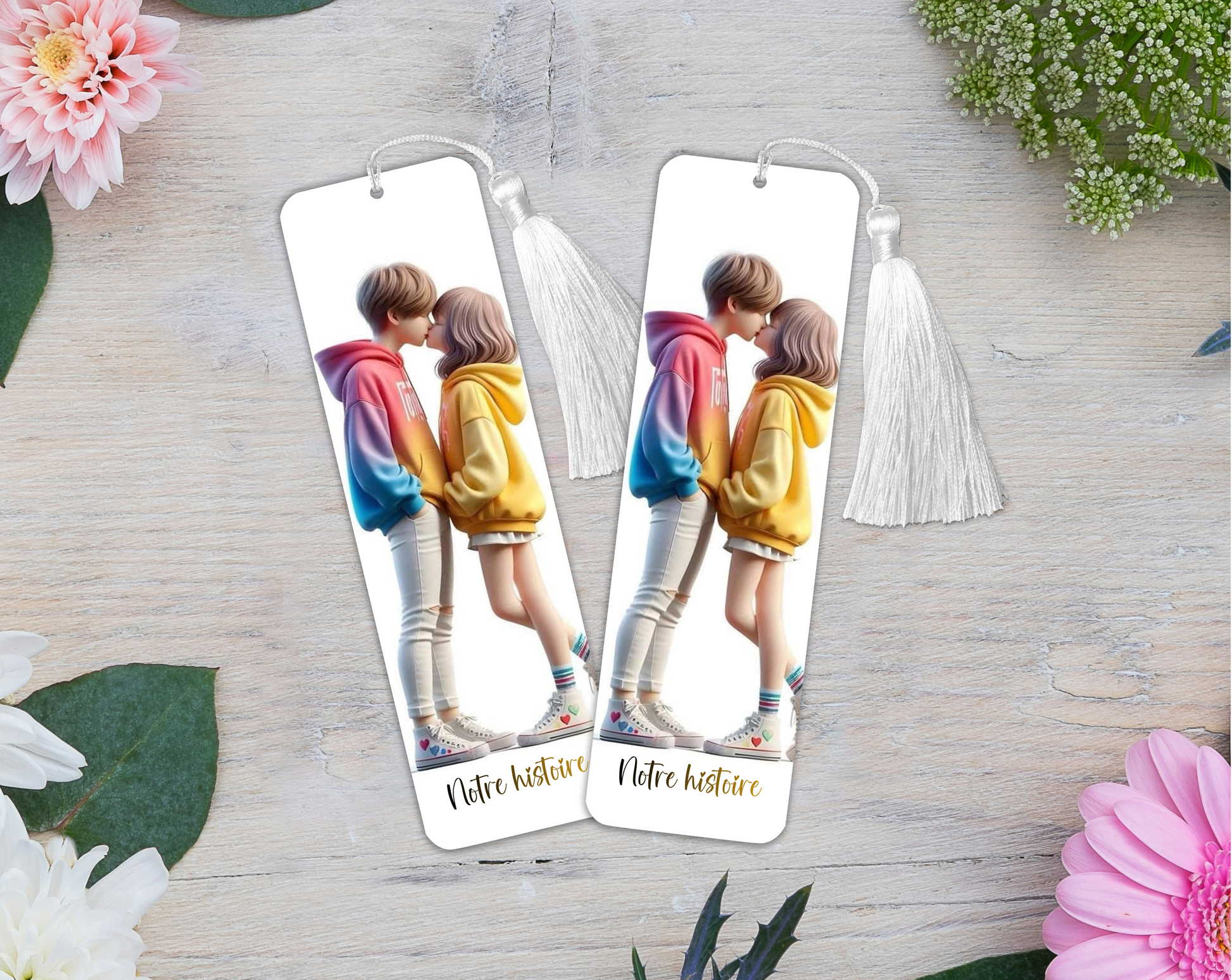 Ce marque-page délicatement illustré célèbre les liens uniques et les moments partagés. Glissé dans votre livre préféré, il devient le témoin silencieux de vos instants de lecture… et de votre propre histoire.