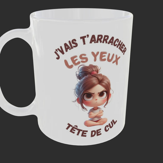 Mug humour "Je vais t'arracher les yeux, tête de cul" - Petite fille